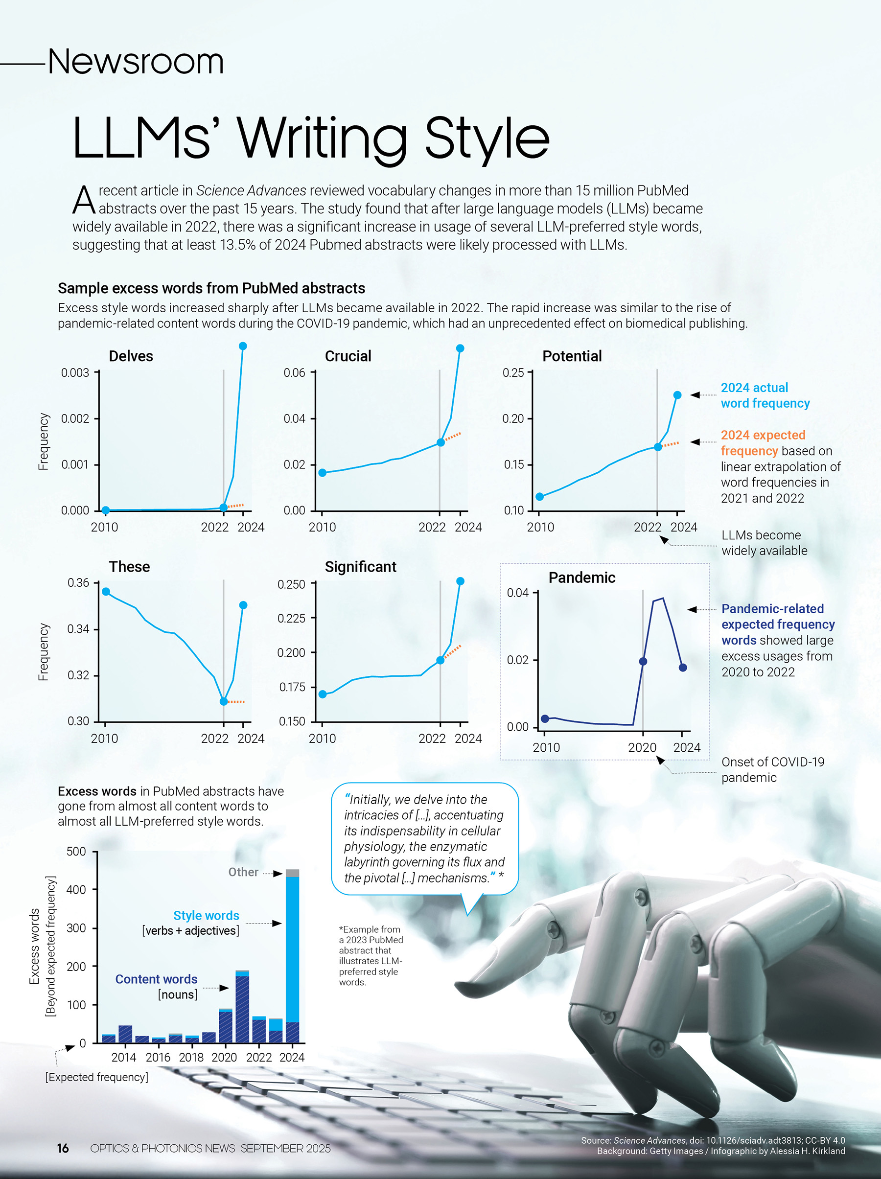 A study found that after large language models (LLMs) became widely available in 2022, there was a significant increase in usage of LLM-preferred style words in PubMed abstracts.