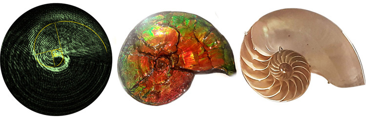 The logarithmic spiral produced by optical rotatum follows a pattern often found in nature, including nautilus shells. [Image: Capasso Lab / Harvard SEAS]