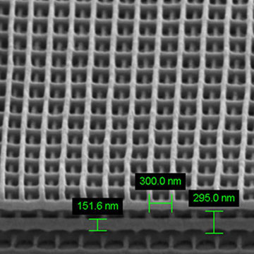 Liu and colleagues also used multiphoton DLW to create 3D structures in the form of woodpiles—layers of cylinders stacked on top of one another, with each layer at right angles to the one below. They were able to make woodpiles with cylinders spaced just 225 nm apart and with parallel-layer separations of 318 nm—just beyond the 320 nm diffraction limit.